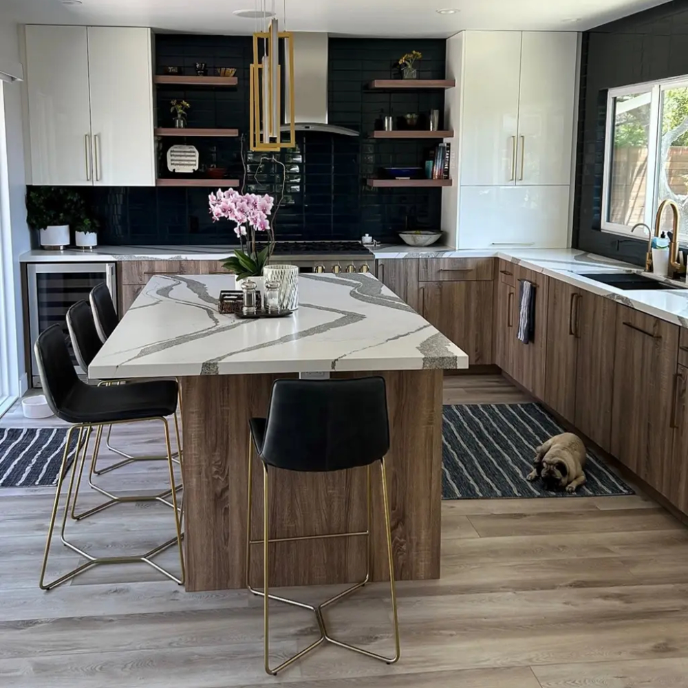 Gloss Soft White and Rustic Oak Slab Door Style